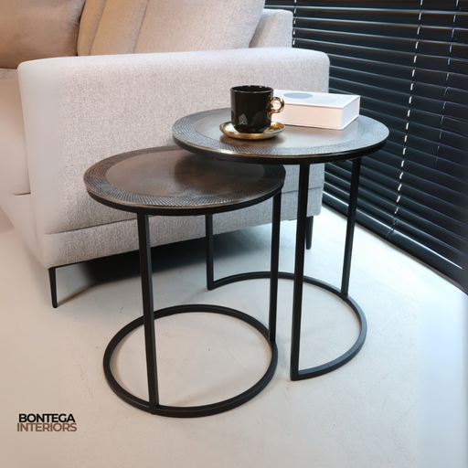 Sochi bijzettafel set van 2, Nickel antique Materiaal Aluminium - Nickel antique Materiaal 2 Frame metaal - Zwart - gepoedercoat W (cm) 41/49 ...